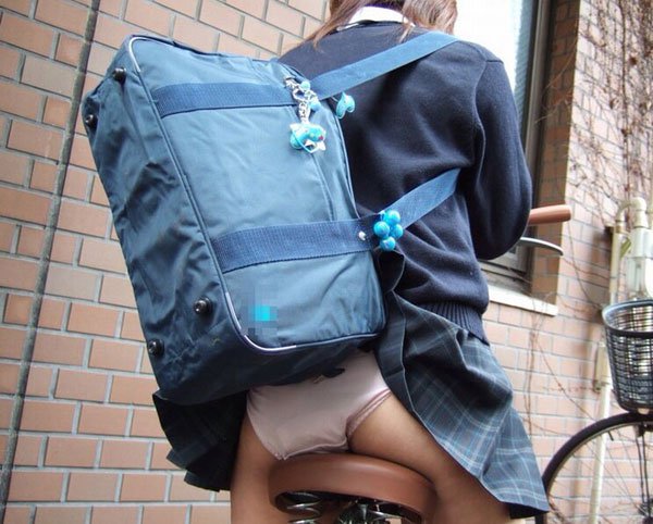 バッグのせいでスカートが捲れてパンチラする、JK引っ掛けハプニング。