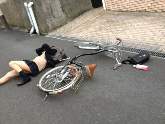 マンガみたいなハプニングが続出してる、JKのパンチラハプニング画像。