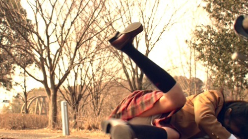 転倒してしまいスカートが捲れてパンチラする、JKずっこけハプニング。