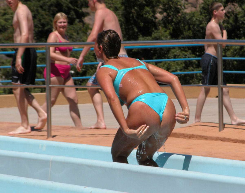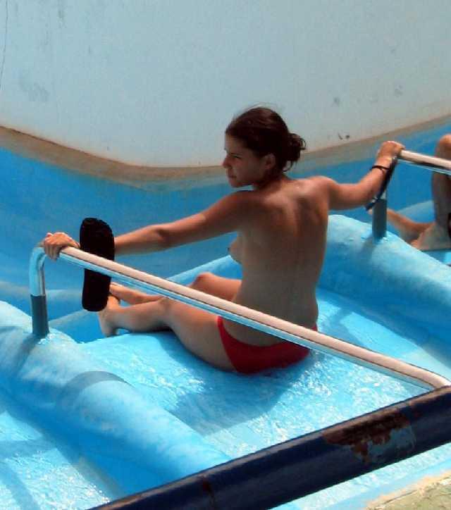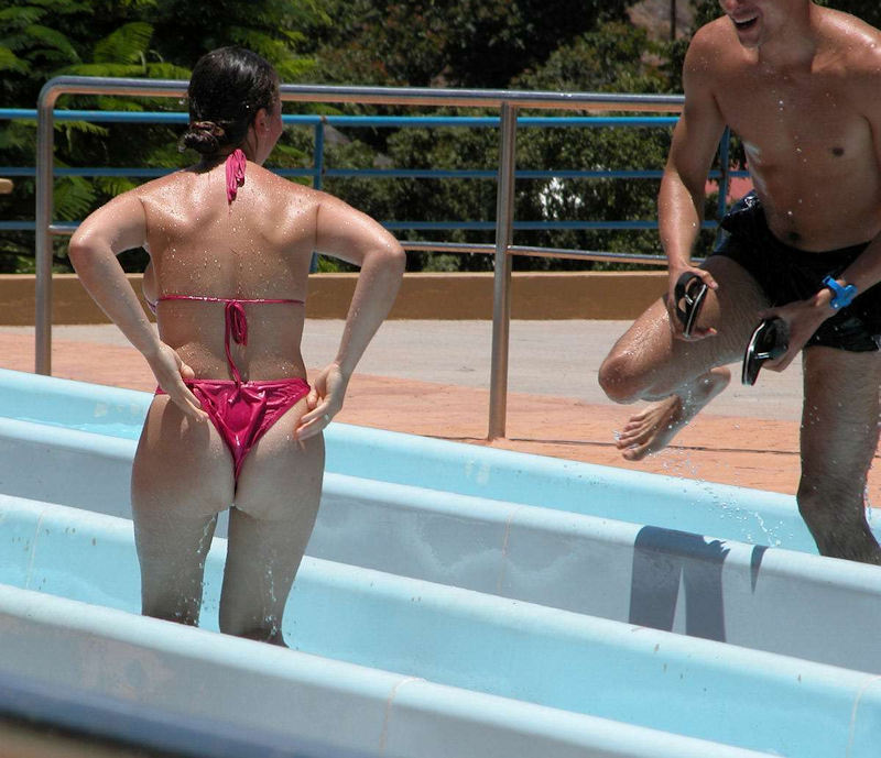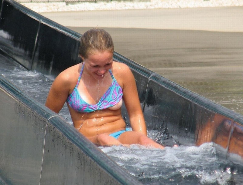 ウォータースライダーでおっぱいポロリしたりお尻が半ケツになってるエロ画像です。プールのウォータースライダーは水着がズレる恥ずかしいエロハプニングが満載ですね。