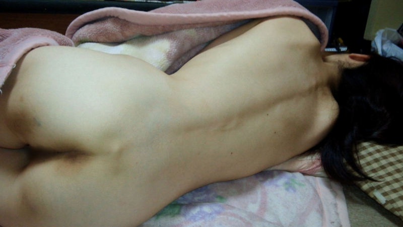 セックスした後でそのまま寝てしまったのか、それとも普段からそうなのか、全裸で寝ている女性の画像。