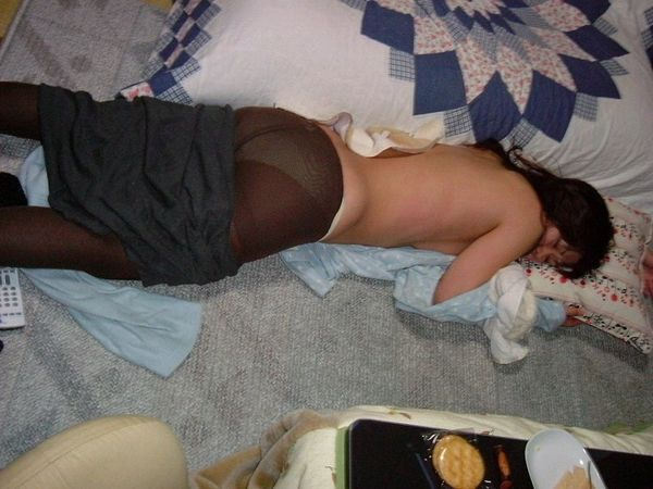 うつぶせのぐったりとした姿で寝ている女性の画像など、寝姿色々・悪戯色々な家庭内のエロ画像。