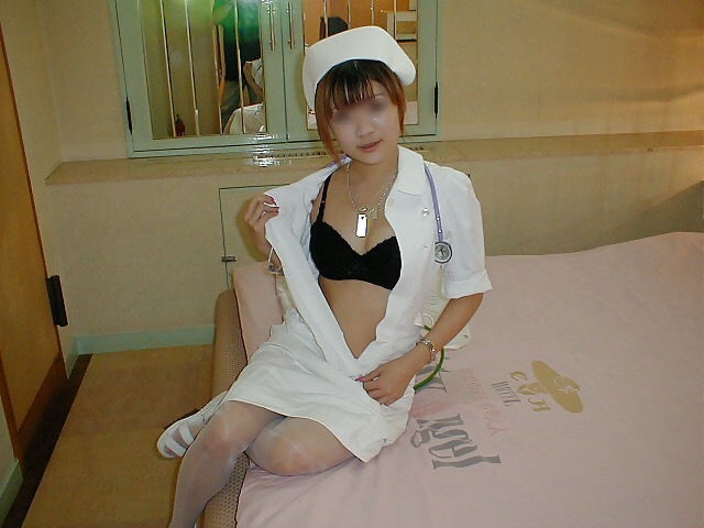 はだけた胸元からブラが見えている、ブラチラナースの胸チラ画像。