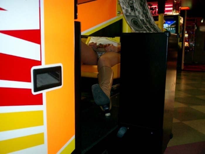 パンツがずっとハミ出している、ミニスカギャルのパンチラ。