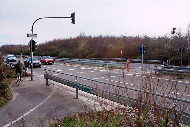 - At a traffic light and zebra crossing