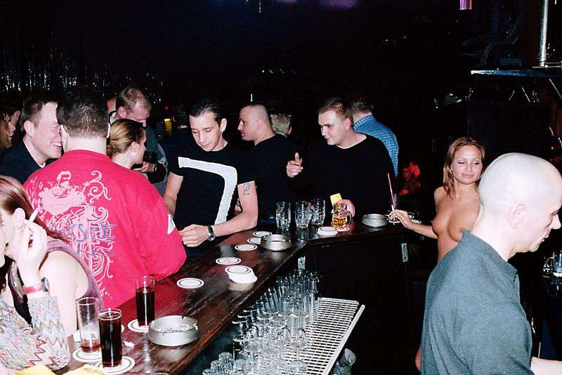 - In a big discotheque Saturday night