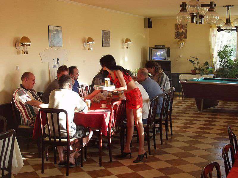 - In a restaurant